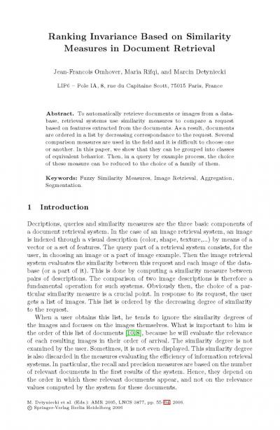 Ranking Invariance Based on Similarity Measures in Document Retrieval