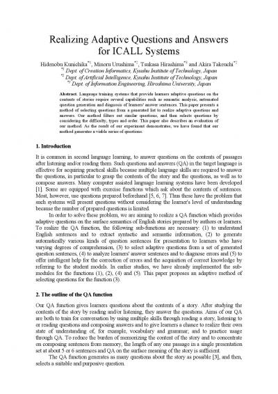 Realizing Adaptive Questions and Answers for ICALL Systems