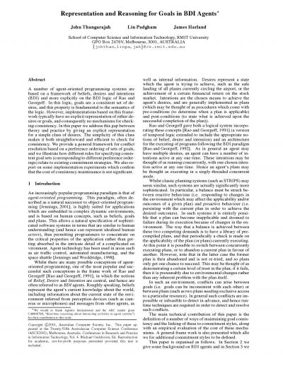 Representation and Reasoning for Goals in BDI Agents