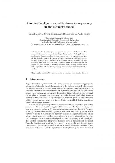 Sanitizable Signatures with Strong Transparency in the Standard Model