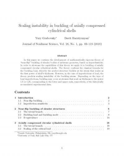Scaling Instability in Buckling of Axially Compressed Cylindrical Shells