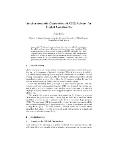 Semi-automatic Generation of CHR Solvers for Global Constraints