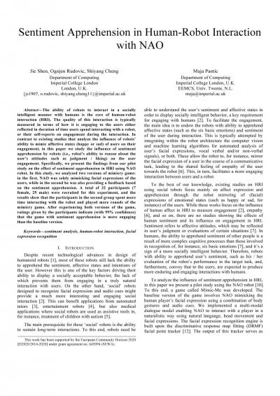 Sentiment apprehension in human-robot interaction with NAO