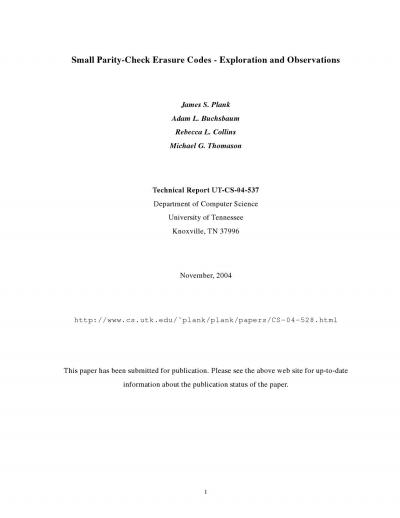 Small Parity-Check Erasure Codes - Exploration and Observations
