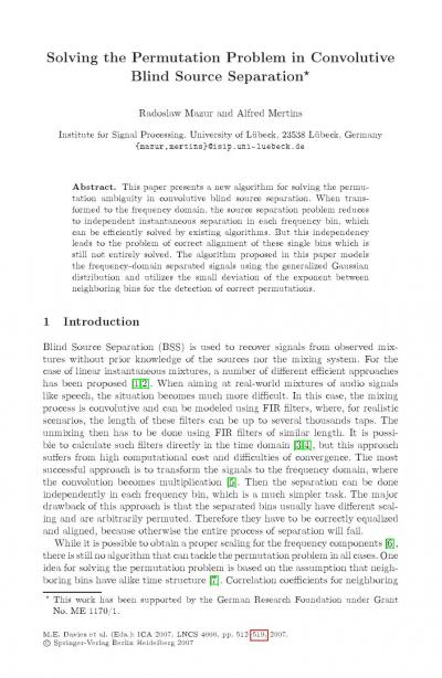 Solving the Permutation Problem in Convolutive Blind Source Separation