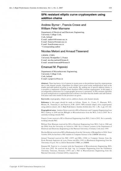 SPA resistant Elliptic Curve Cryptosystem using Addition Chains