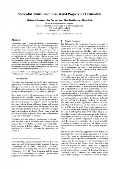 Successful Studio-based Real-World Projects in IT Education