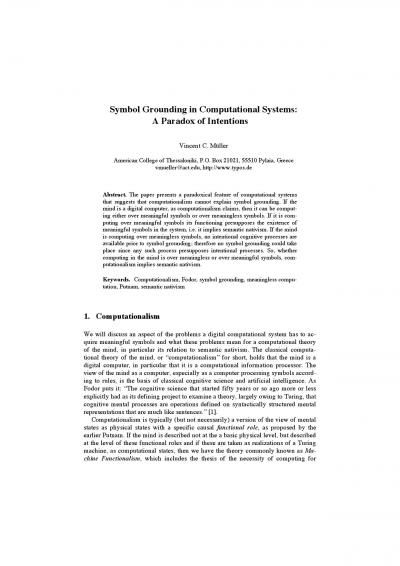 Symbol Grounding in Computational Systems: A Paradox of Intentions