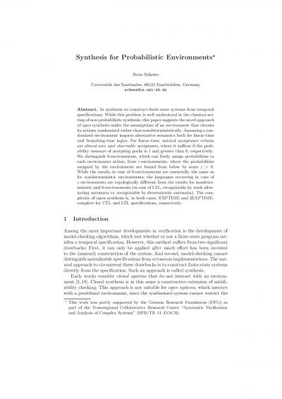 Synthesis for Probabilistic Environments