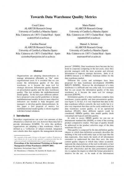 metrics for data warehouse quality.