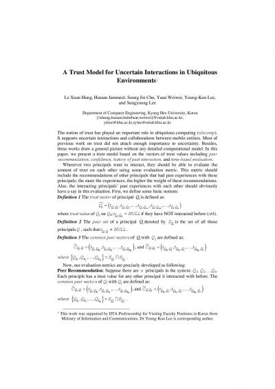 A Trust Model for Uncertain Interactions in Ubiquitous Environments