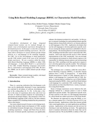 Using Role-Based Modeling Language (RBML) to Characterize Model Families