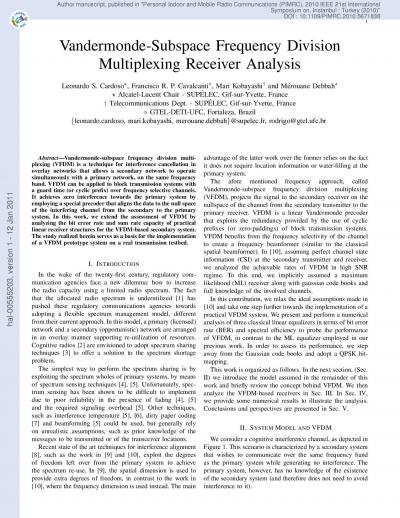 Vandermonde-subspace frequency division multiplexing receiver analysis
