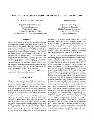 Video semantic concept detection via associative classification