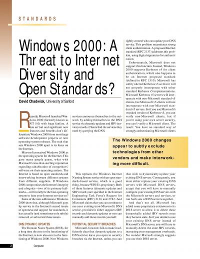 Windows 2000: A Threat to Internet Diversity and Open Standards?