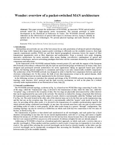 WONDER: Overview of a Packet-Switched MAN Architecture